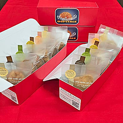 袋から取り出し、冷凍されたスフォリアテッラを電子レンジで6~8秒程度温めて、さらにオーブンかトースター(180~200℃)で約3~5分程度温め、少し冷ますと焼き立てと変わらない状態でお召し上がりいただけます。